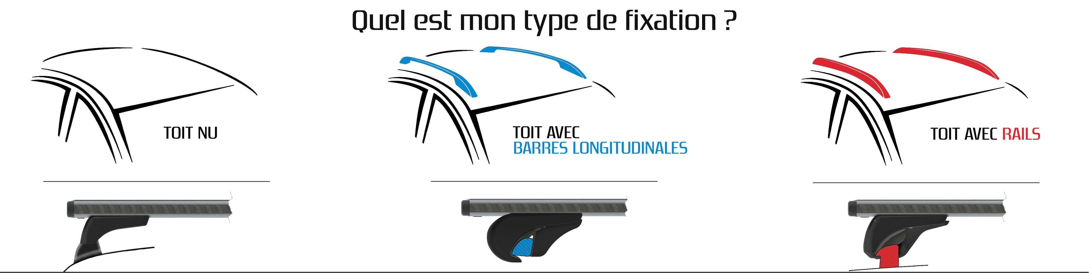 Notre catalogue couvre tous les systèmes de fixation : toit nu, barres longitudinales ouvertes, rails intégrés ou points de fixation. Chaque gamme est conçue pour offrir une installation précise, une excellente stabilité et une compatibilité parfaite avec votre véhicule. Vous trouverez des barres en aluminium (légères, silencieuses, esthétiques) ou en acier (robustes et économiques).