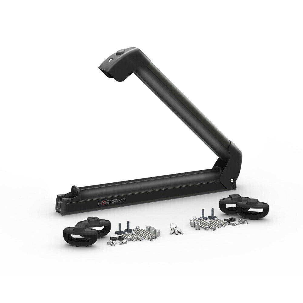 Le Nordic King noir est équipé d’une serrure antivol qui verrouille efficacement les skis ou snowboards. Les mâchoires recouvertes de gomme haute performance assurent une bonne tenue du matériel, tout en absorbant les vibrations lors des trajets hivernaux.