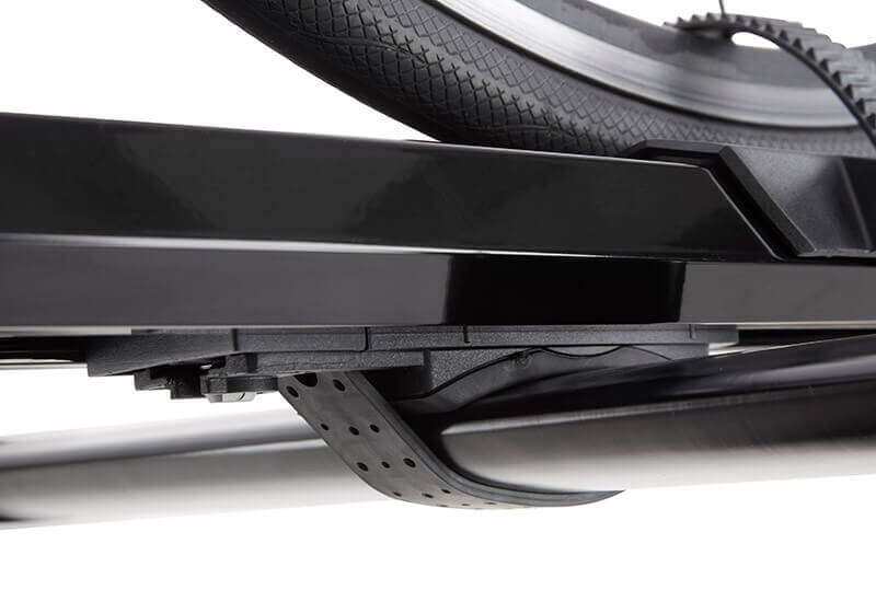 La plate-forme arrière coulisse pour éviter toute gêne avec la porte du coffre et facilite l’installation de pneus très larges. Cette caractéristique rend le modèle particulièrement intéressant pour les VTT modernes, les vélos à pneus ballon et les fat bikes.