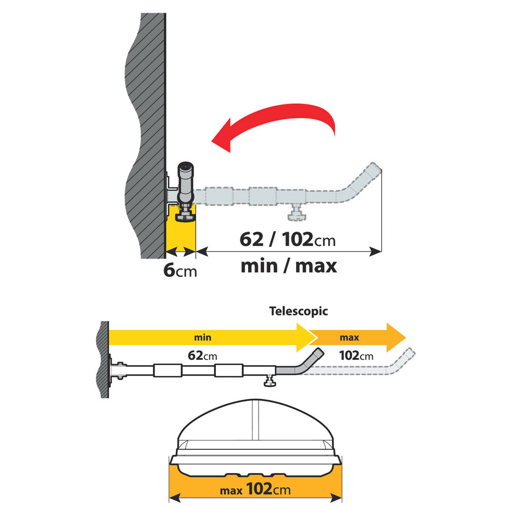 Cette paire de supports muraux horizontaux offre une solution pratique et sécurisée pour stocker votre coffre de toit contre un mur. Grâce à leur structure télescopique (62–102 cm), ils s’adaptent facilement à la taille du coffre et se règlent par un pommeau ergonomique.